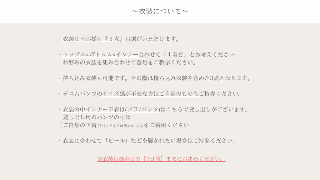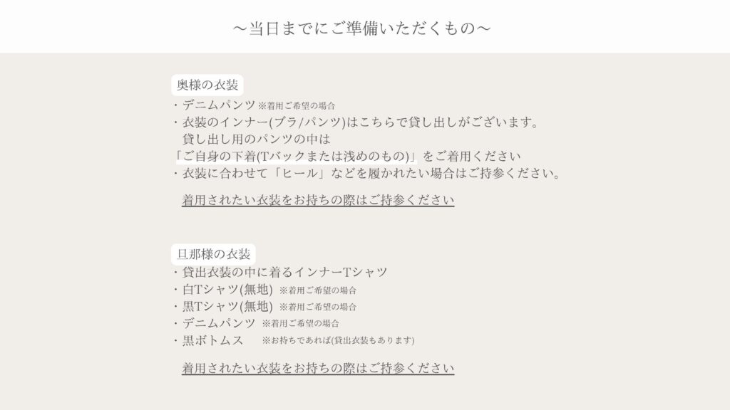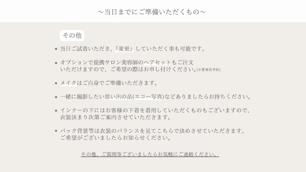 持ち込み衣装・リクエスト等、確認事項を公式LINEにてやり取りさせていただきます。